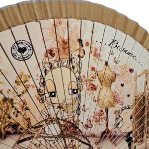 Abanico de varillas plásticas y tela lisa. Tamaño mediano, 23 cm cerrado.