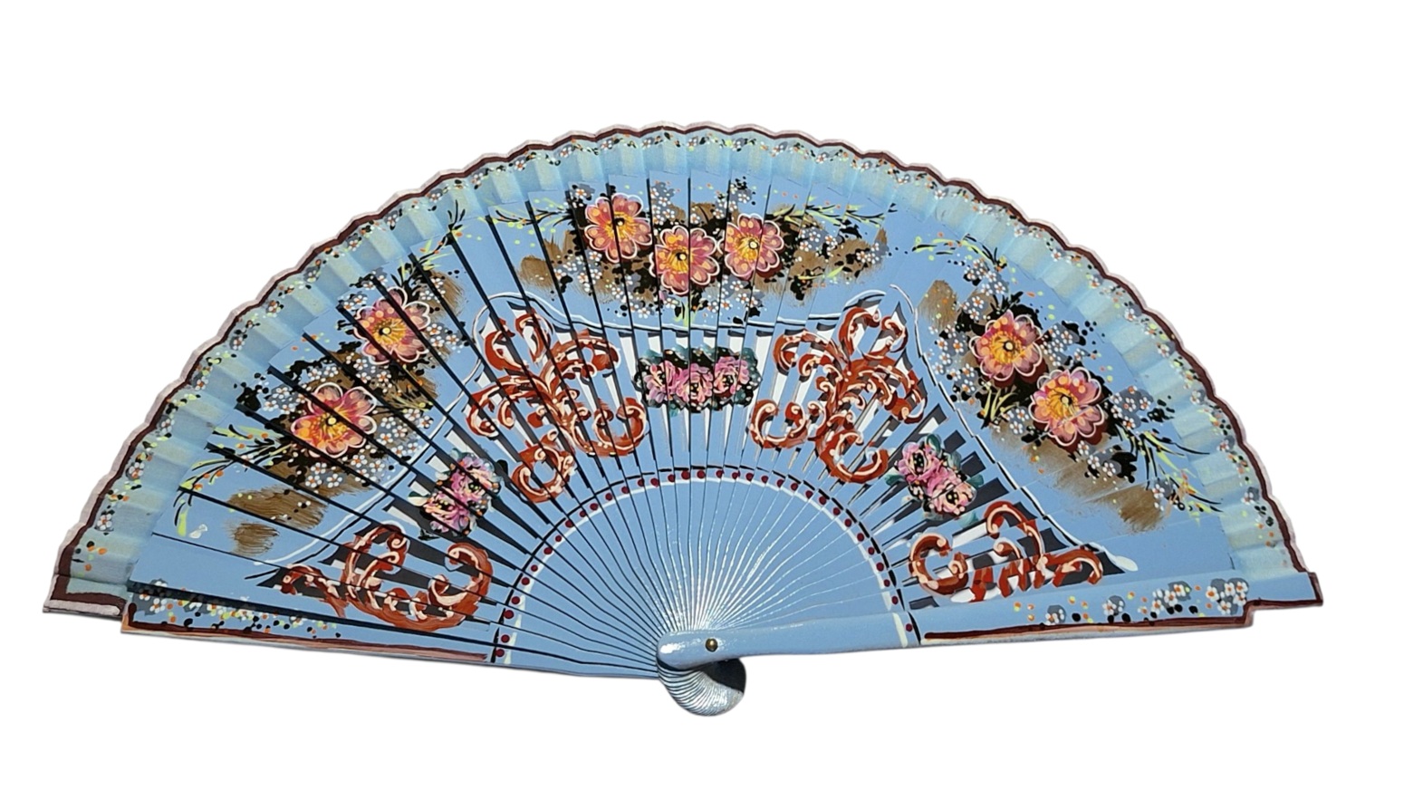 Abanico Pintado a Mano colores celeste (23 cm)