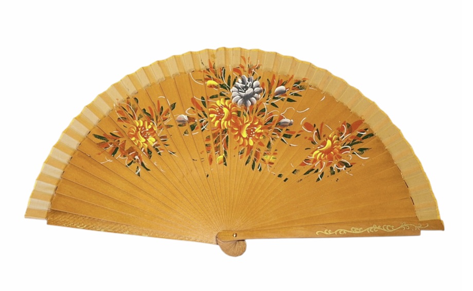 Abanico Pintado a Mano natural flores (23 cm)