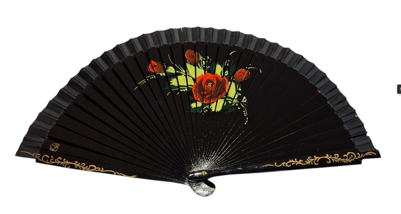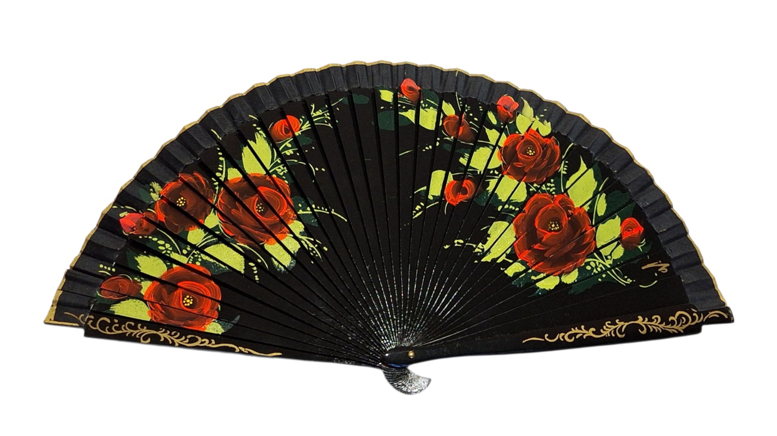 Abanico Pintado a Mano negro rosas rojas (23 cm)