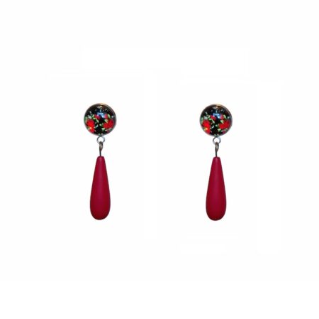 Aro plástico con cabujón negro rosas rojas. Tamaño pequeño, aprox. 5 cm alto. Liviano. Con pasador.
