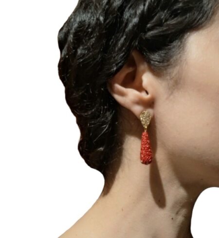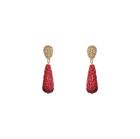 Hermosos pendientes de resina tallada con cabezal dorado. Largo 5 cm. Accesorios ideales para el baile flamenco, danzas españoles, matrimonios, fiestas y para la calle.