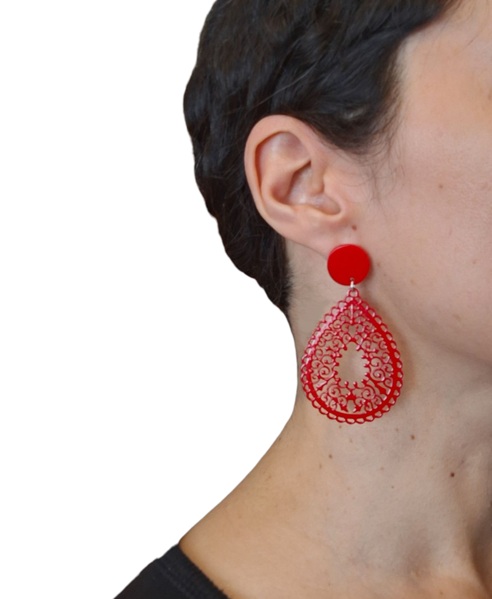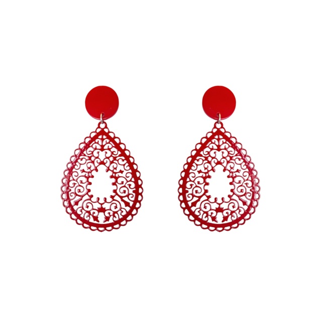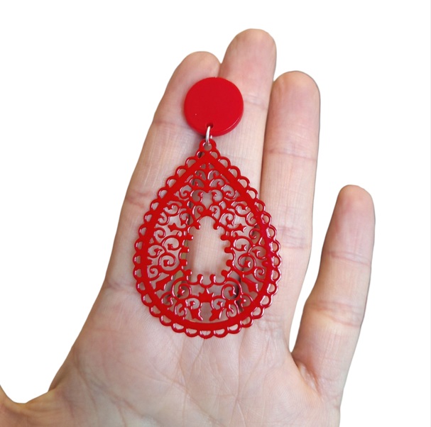 Bellos aros metálicos esmaltados con filigrana. Muy livianos. Largo 6,5 cm. Ideales para el baile flamenco, danzas españolas y para la calle.