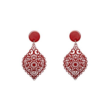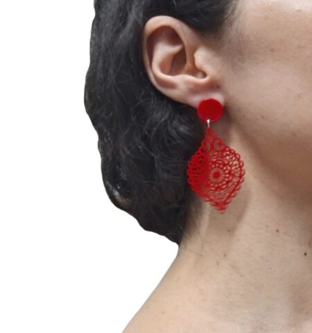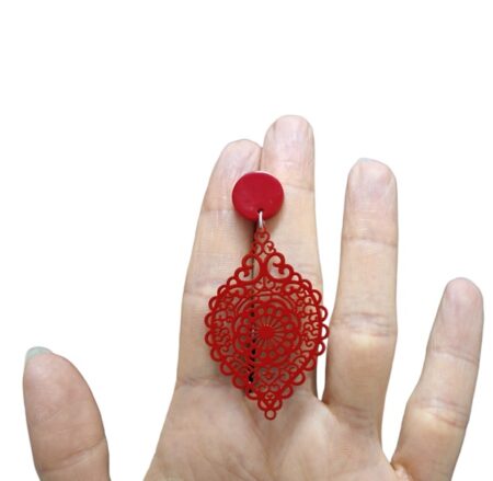 Novedosos aros metálicos esmaltados con filigrana. Muy livianos. Largo 6cm. Ideales para el baile flamenco, danzas españolas y para la calle.