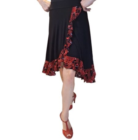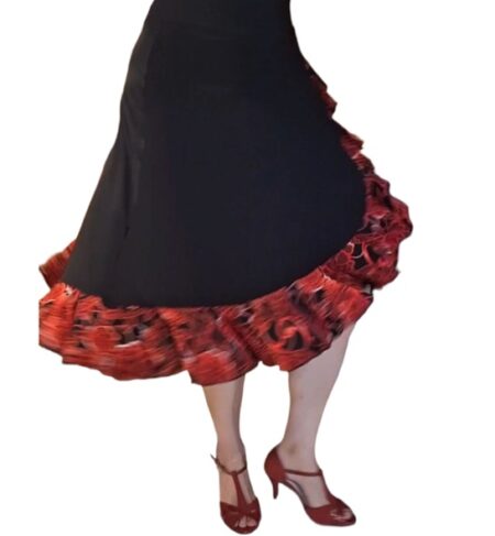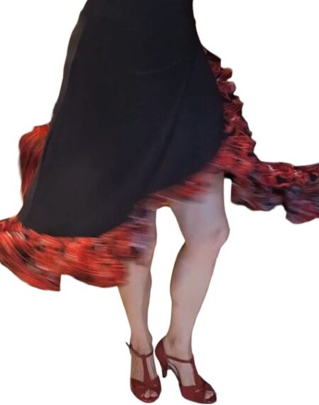 Falda corta para ensayo, presentaciones o para la calle. Tela elasticada. Multiples usos: flamenco, danza española, escuela bolera, tango.