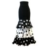 k) Falda de flamenco 3 volantes – lunares blanco y negro Ribete blanco