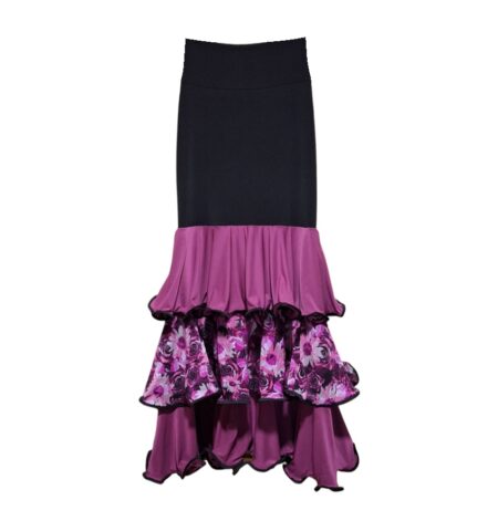 Falda de flamenco fabricada en tela elasticada. Modelo muy flamenco con 3 volantes grandes, ruedo pequeño. Ideal para clases o presentaciones de flamenco.