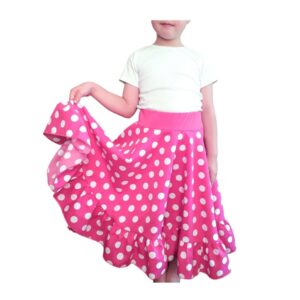 Faldas de flamenco para niñas en Santiago de Chile. Nuestras faldas de niña están fabricadas en telas elasticadas con un elástico ancho regulable en la cintura, lo cual permite que se adapten a los distintos tipos de cuerpo. Mantenemos stock en tallas que van desde 3 hasta 11 años, en distintos colores. Se utilizan para el baile flamenco, danza clásica española o bailes españoles en general.