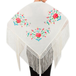 z. Mantón Grande Polyester 150×150cm – Crema flores multicolor
