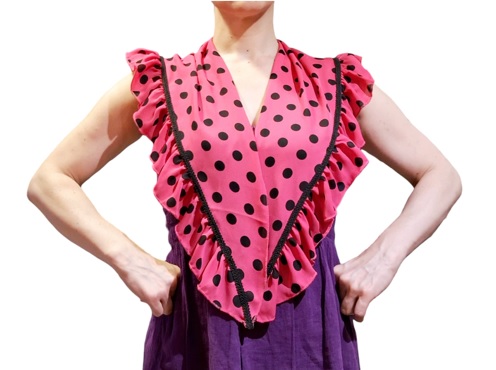 Punta con Volantes gasa fucsia lunares negros